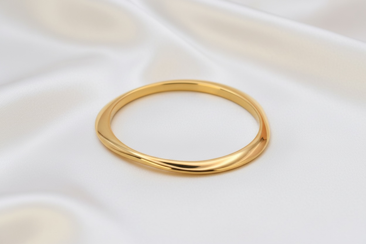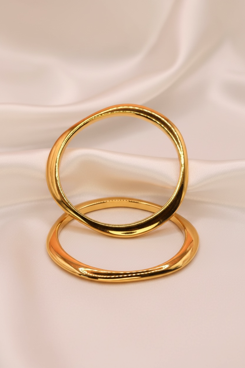 The Daniela bangle is a chic, modern accessory that showcases an irregular geometric design in gold-plated stainless steel. Its unique shape adds a trendy flair to any outfit, while the durable stainless steel ensures long-lasting wear. With its elegant gold finish, this bangle is perfect for adding a sophisticated touch to your everyday style or making a bold statement at a special event.